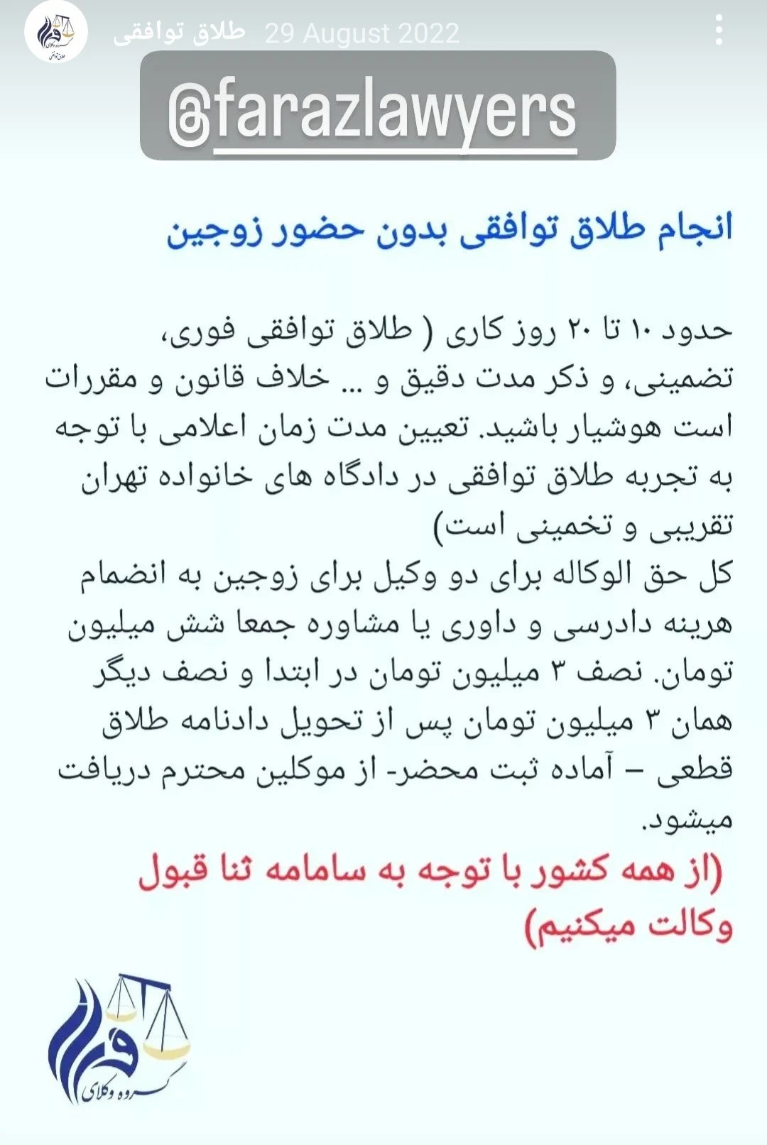 دفتر وکالت ما با ارائه خدمات حقوقی تخصصی در زمینههای وکیل نفقه، وکیل چک و سفته و وکیل جرایم اینترنتی، همراه شماست. ما دعاوی کیفری، ملکی و خانواده را با دقت و تجربه بالا پیگیری می...