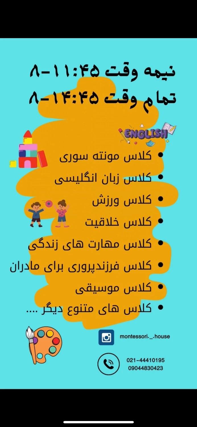 مرکز آموزشی پیشرفتهای که با بهرهگیری از روش مونتهسوری، محیطی غنی و الهامبخش برای رشد همهجانبه کودکان فراهم کرده است. این مجموعه با مدیریت کارشناسان مجرب و نماینده رسمی موسسه فرهنگی آموزشی مهکامه آفرینش، استانداردهای جهانی آموزش را در فضایی امن و شاد اجرا میکند.