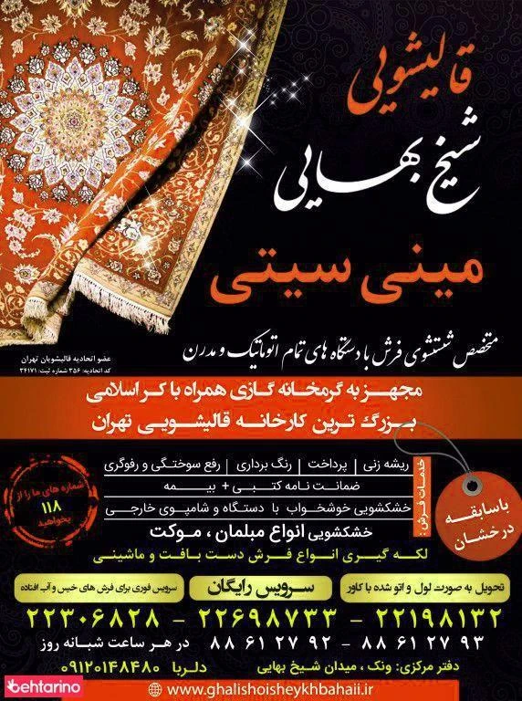 تهران،شیخ بهایی شمالی،ده ونک خیابان شرافتی،خیابان چهارم یا رجبی پ۱۱۳دفترقالیشویی شیخ بهایی