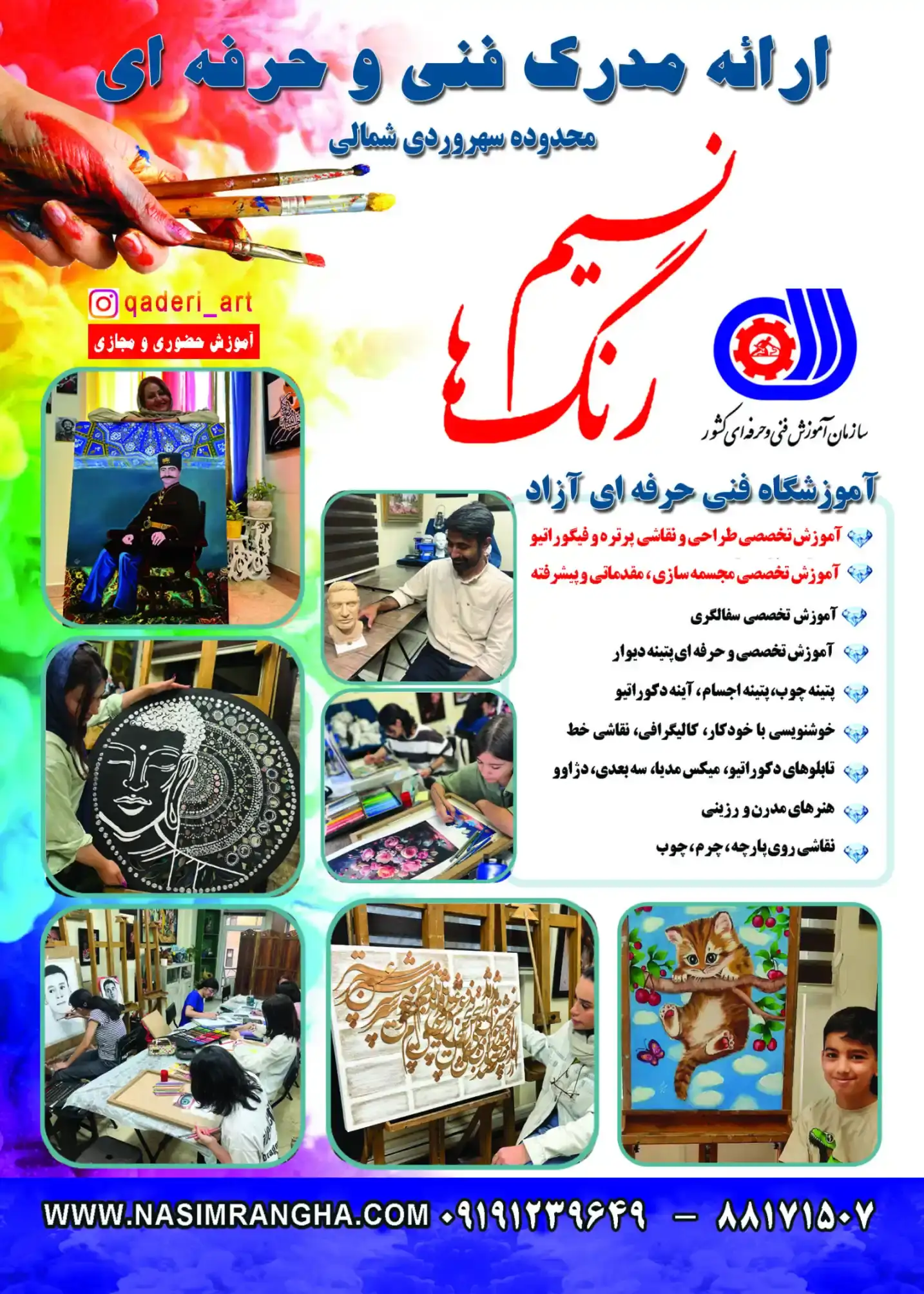 آموزشگاه آزاد فنی و حرفهای نسیم رنگها به عنوان یک مرجع معتبر و پیشرو در آموزش هنرهای تجسمی، با بیش از ربع قرن تجربه درخشان، میزبان علاقهمندان به دنیای رنگ و بوم است. این آموزشگاه با تکیه بر سابقه طولانی و اساتید مجرب، محیطی پویا و الهامبخش را برای کشف و پرورش استعدادهای هنری فراهم کرده است.