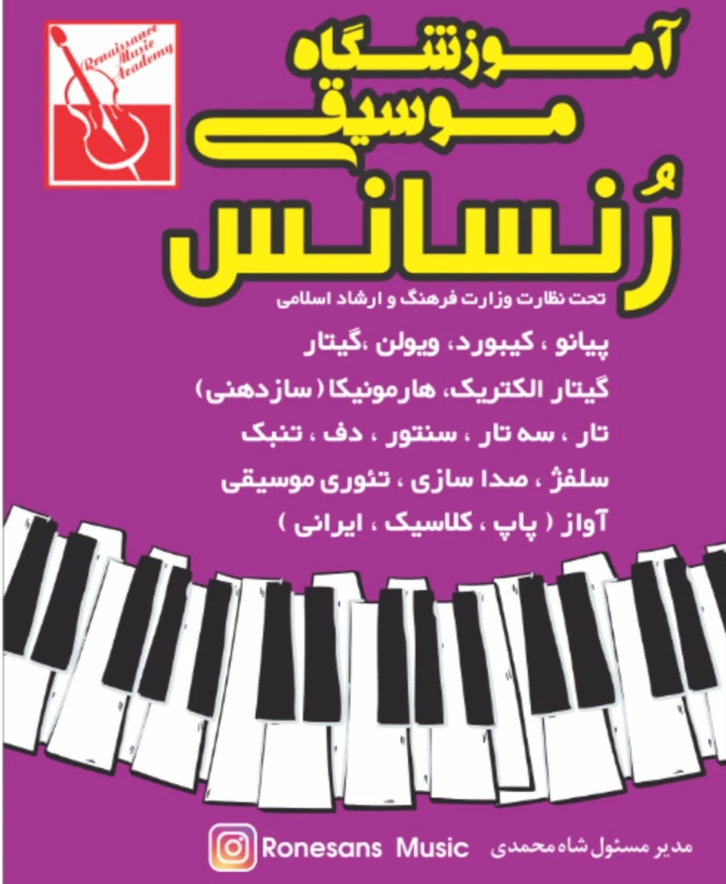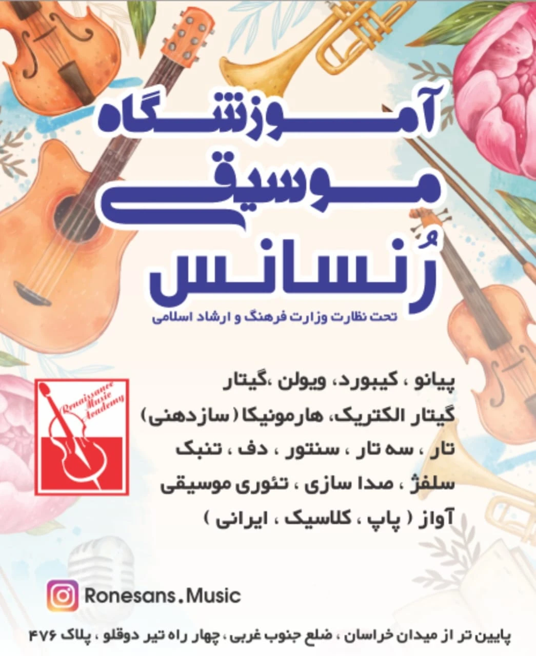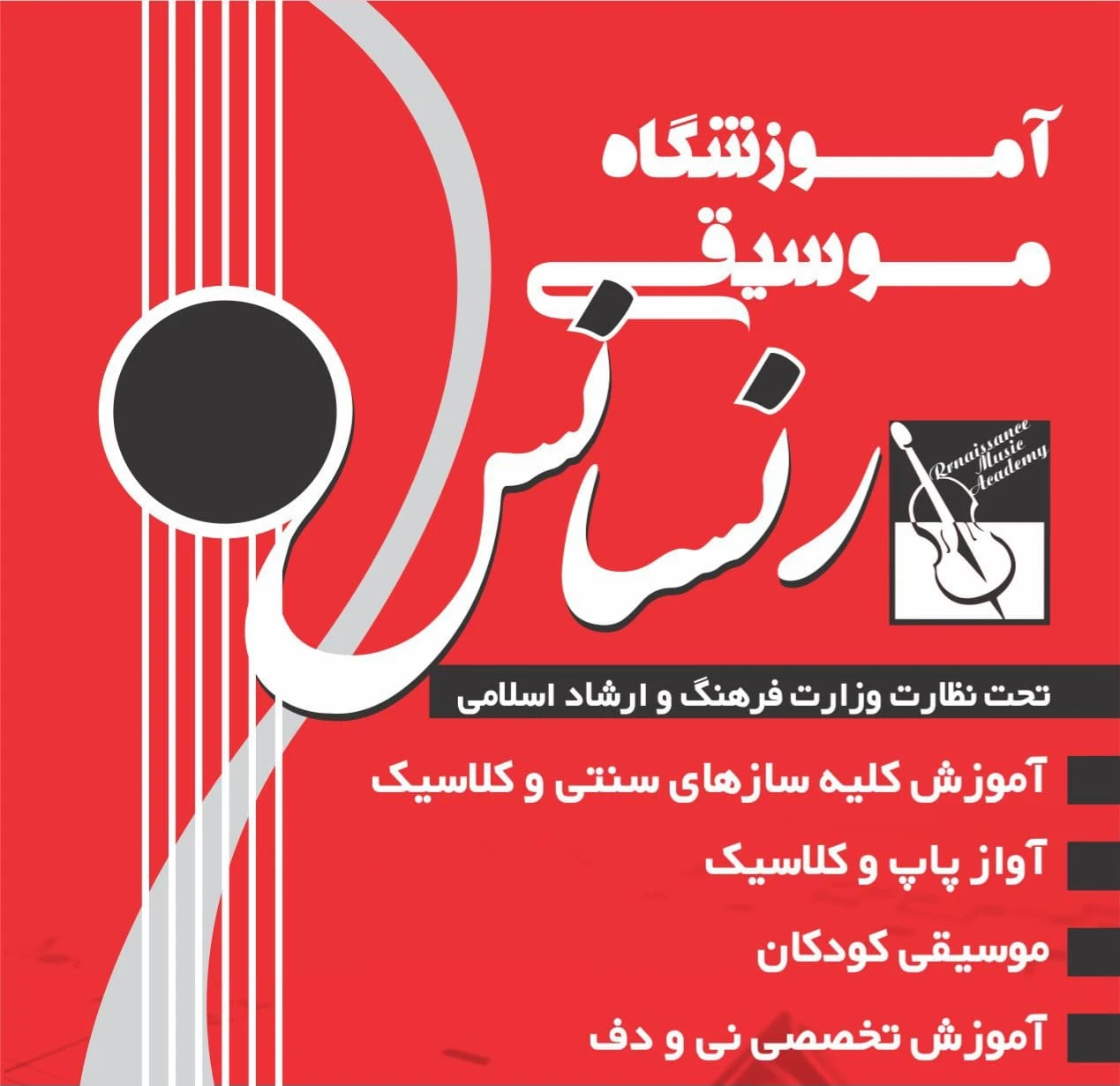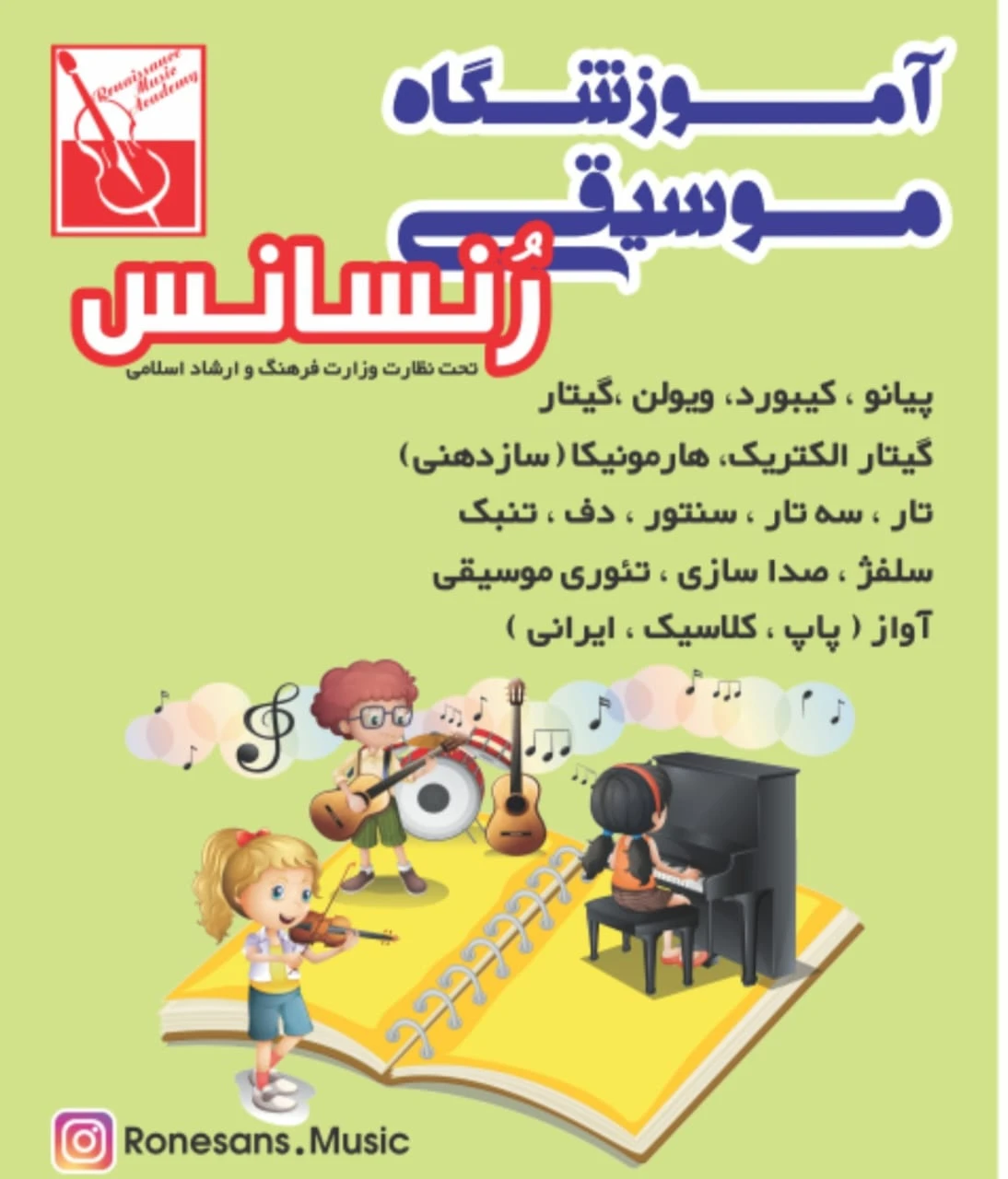 آموزش تخصصی کمانچه، ساکسیفون و هنگدرام با اساتید مجرب. دورههای موسیقی کودک و آواز پاپ/سنتی. کلاسهای مجهز به دوربین و مشاوره رایگان خرید ساز. دارای مجوز رسمی از ارشاد.