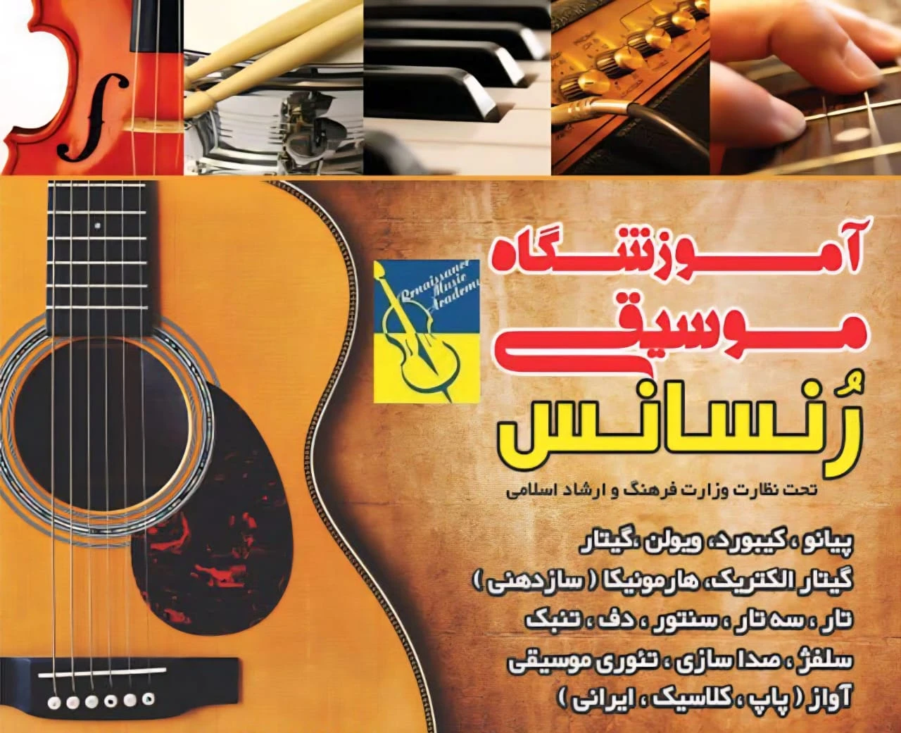 آموزش تخصصی سنتور، تمبک، گیتار و سایر سازها با روشی نوین. فروش و تعمیر سازهای موسیقی، کلاسهای خصوصی در منزل یا آموزشگاه. هر جلسه یک آهنگ جدید یاد بگیرید.