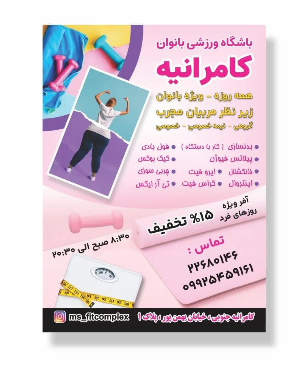 مجموعهای تخصصی برای بانوان که با مدیریت و مربیگری خانم مریم صالحی، محیطی امن و حرفهای را برای ورزش و تناسب اندام فراهم کرده است. این مجموعه با ارائهی طیف گستردهای از رشتههای ورزشی، از جمله کراسفیت، فیتنس، فانکشنال، چربیسوزی شکم و پهلو، تیآرایکس، ایروفیت، کیکبوکسینگ، بوکس، یوگا و پیلاتس، به نیازهای متنوع بانوان پاسخ میدهد.