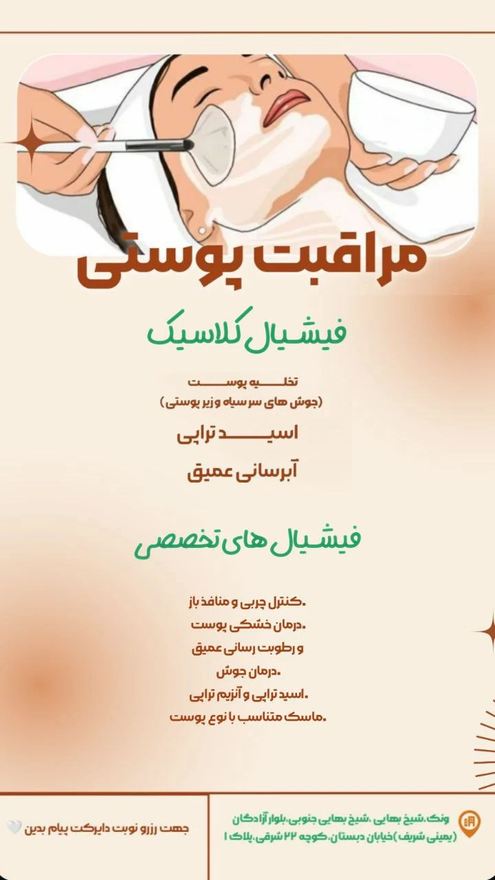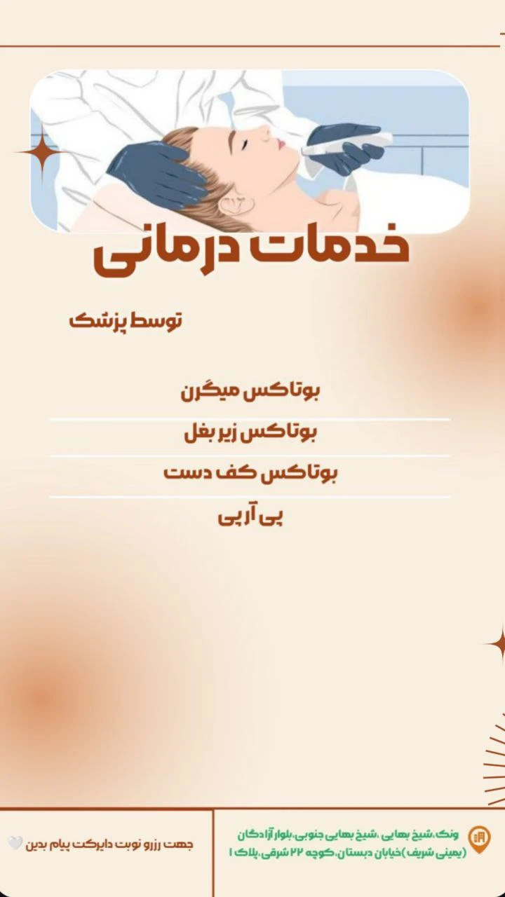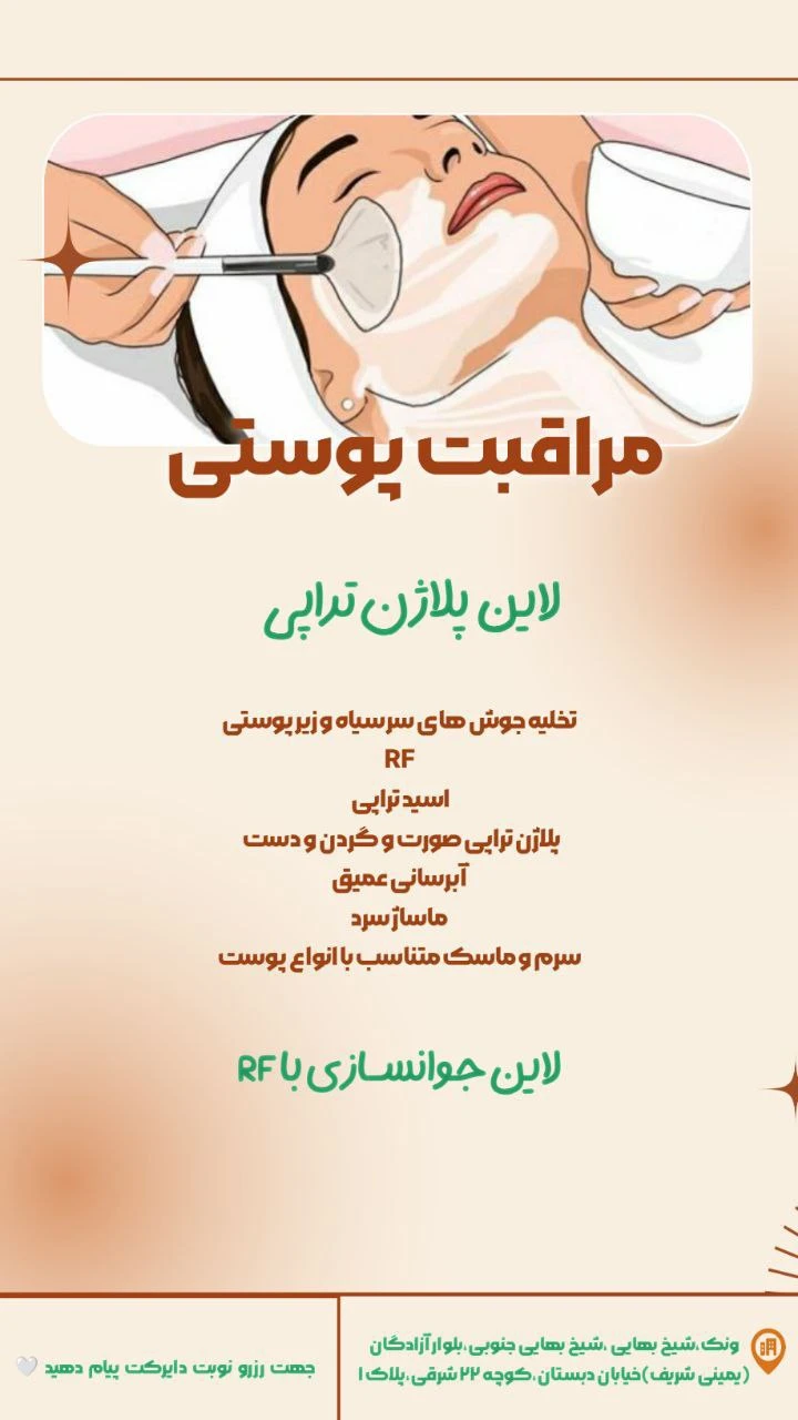 در مرکز تخصصی پوست، مو و زیبایی واقع در شیخ بهایی جنوبی تهران، محیطی لوکس و آرامشبخش همراه با جدیدترین تکنولوژیهای روز دنیا در انتظار شماست. این مرکز با بهرهگیری از پزشکان متخصص و پرسنل مجرب، خدمات جامعی را با هدف ارتقای سلامت و زیبایی ارائه میدهد.