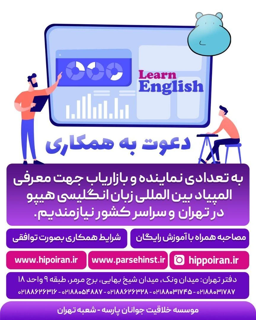 تهران، میدان شیخ بهایی ، برج مرمر ، موسسه آموزشی قایدی هیپو ، طبقه 9.
