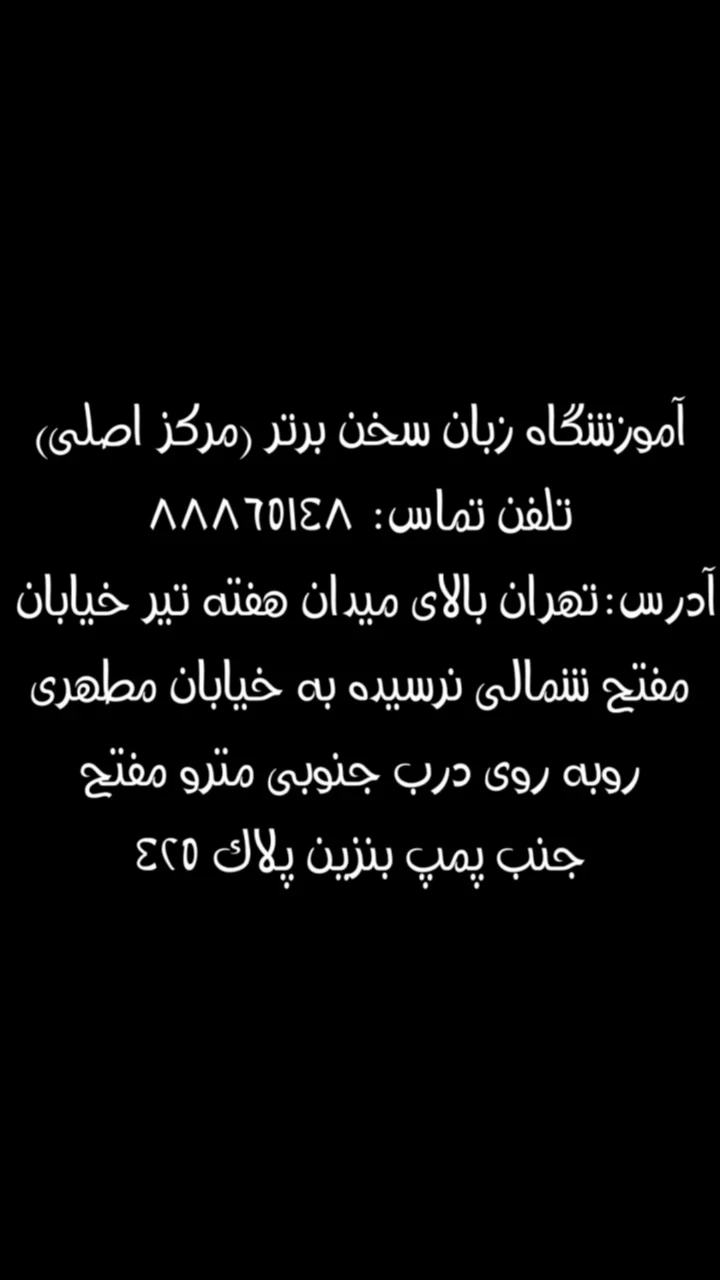 بالای میدان هفت تیر - خ مفتح شمالی - نرسیده به خ مطهری جنب پمپ بنزین روبروی درب جنوبی مترو پلاک 425 ( خارج از محدوده طرح ترافیک تهران )