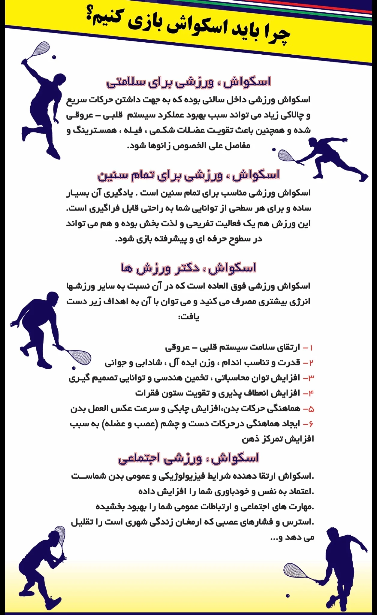در دنیای ورزشهای راکتی، اسکواش به عنوان یکی از جذابترین و پرتحرکترین رشتهها شناخته میشود که ترکیبی از سرعت، دقت و استراتژی است. این ورزش نه تنها باعث تقویت جسم و بهبود سلامت عمومی میشود، بلکه به رشد مهارتهای ذهنی و اجتماعی نیز کمک شایانی میکند.