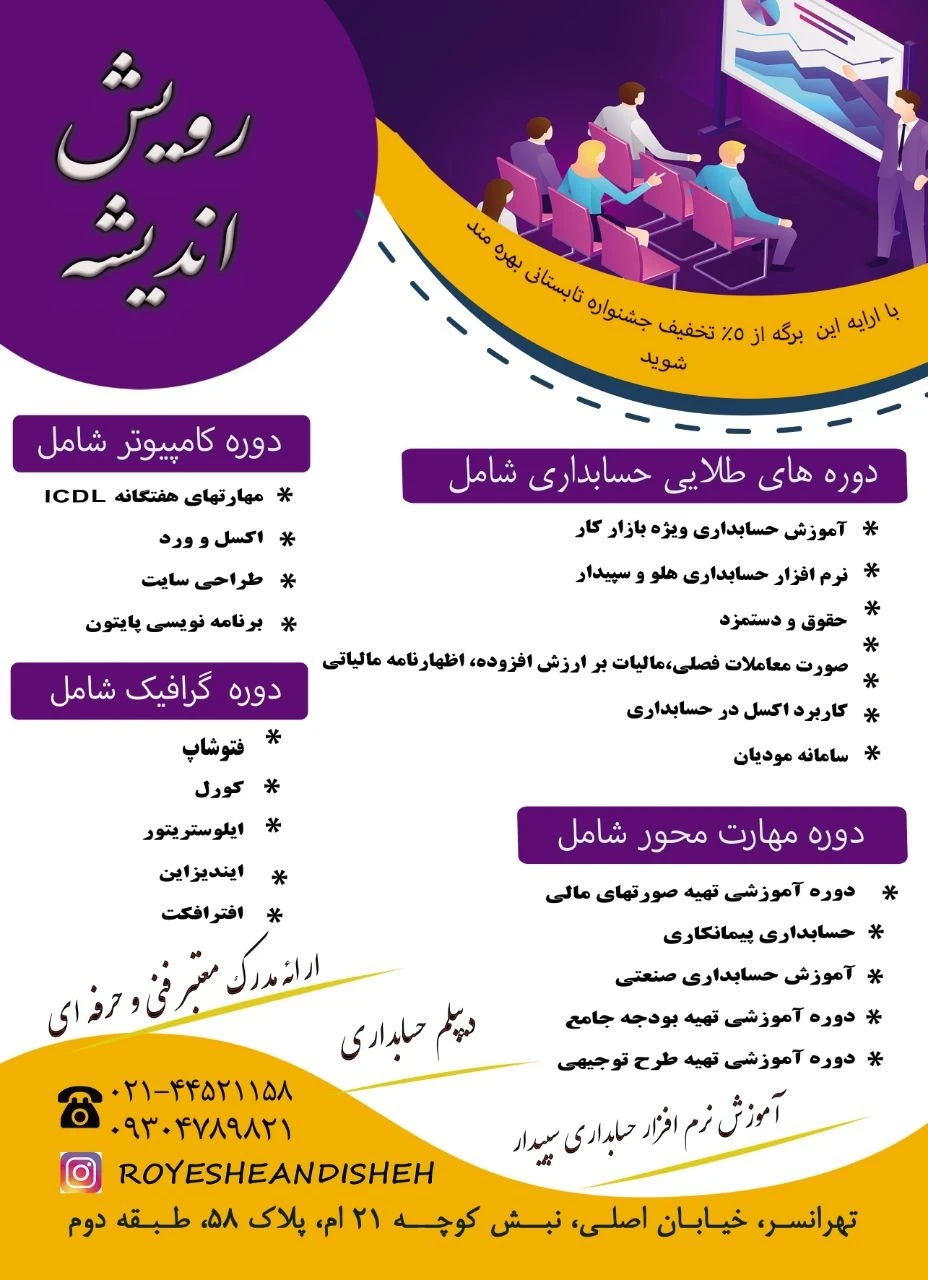 موسسه حسابرسی , کلاس آموزش طراحی گرافیک , کلاس آموزش نرمافزار , کلاس آموزش ورد و اکسل , کلاس آموزش فتوشاپ