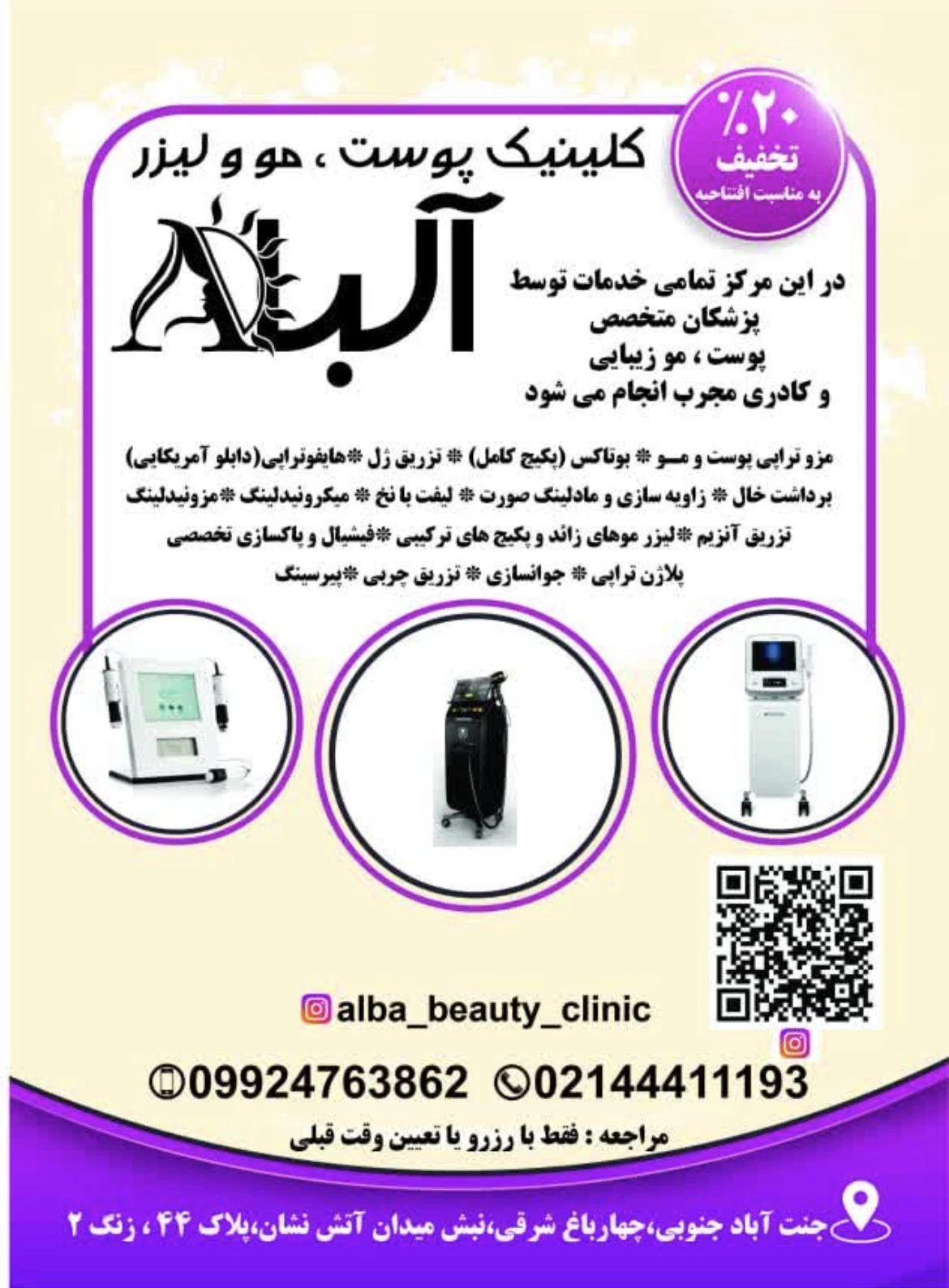 مرکز تخصصی ارائه دهنده طیف گستردهای از خدمات پوست، مو و زیبایی با استفاده از پیشرفتهترین تکنولوژیهای روز دنیا. این مجموعه با بهرهگیری از دستگاههای مدرن و کادر مجرب، خدمات حرفهای با کیفیت عالی ارائه میدهد.