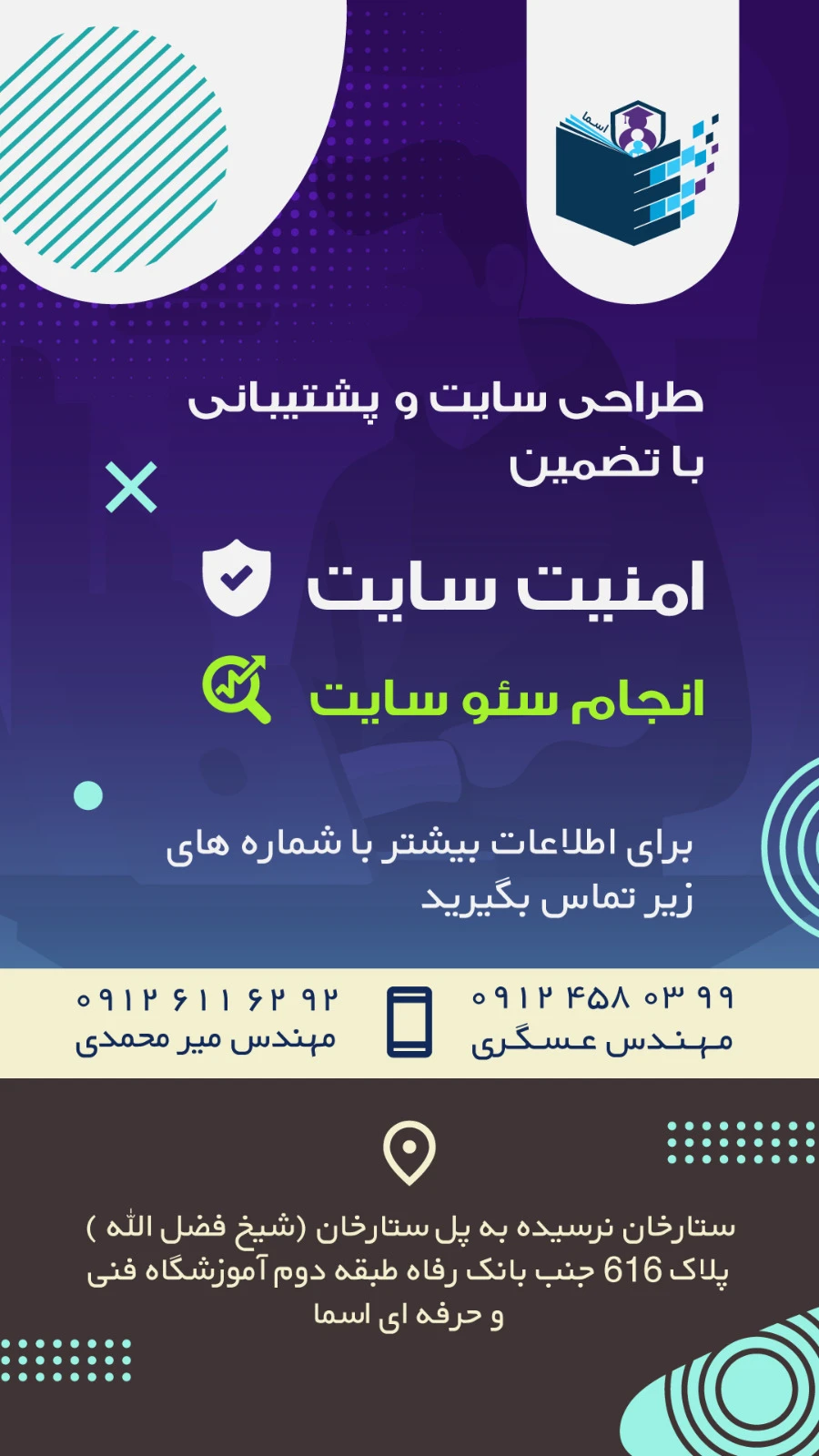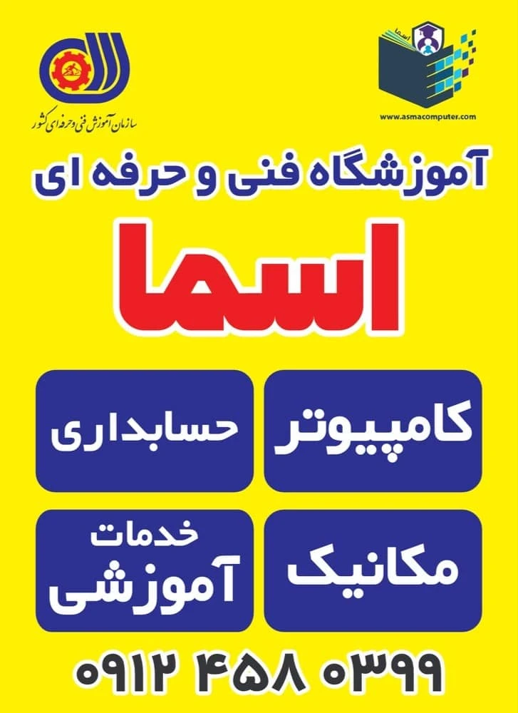 ستارخان ، نرسیده به پل شیخ فضل الله ، پلاک 616 ، بالای بانک رفاه کارگران ، شعبه برق الستوم، طبقه دوم، آموزشگاه فنی و حرفه ای آزاد اسما
