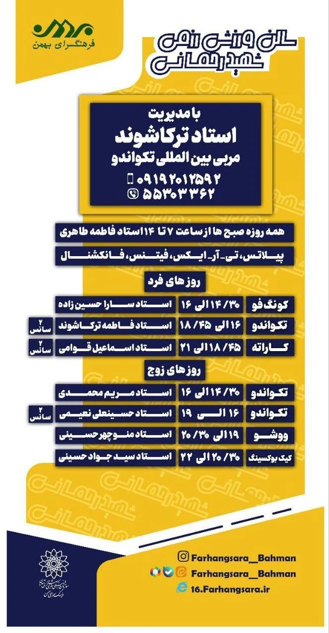 مربی ایروبیک , مربی پیلاتس , مربی کیک بوکسینگ , باشگاه ووشو , کلاس پیلاتس